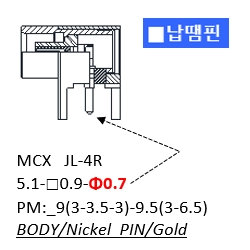 | ItemName | | MCX50 PCB JL-4R MOUNT STEP PM:10.5(3-3.5-4)-9.5(3-6.5) ■A+B/억지끼움/후가공-O ■SOLDER PIN ☞ CN00733-7/2 NICKEL |
